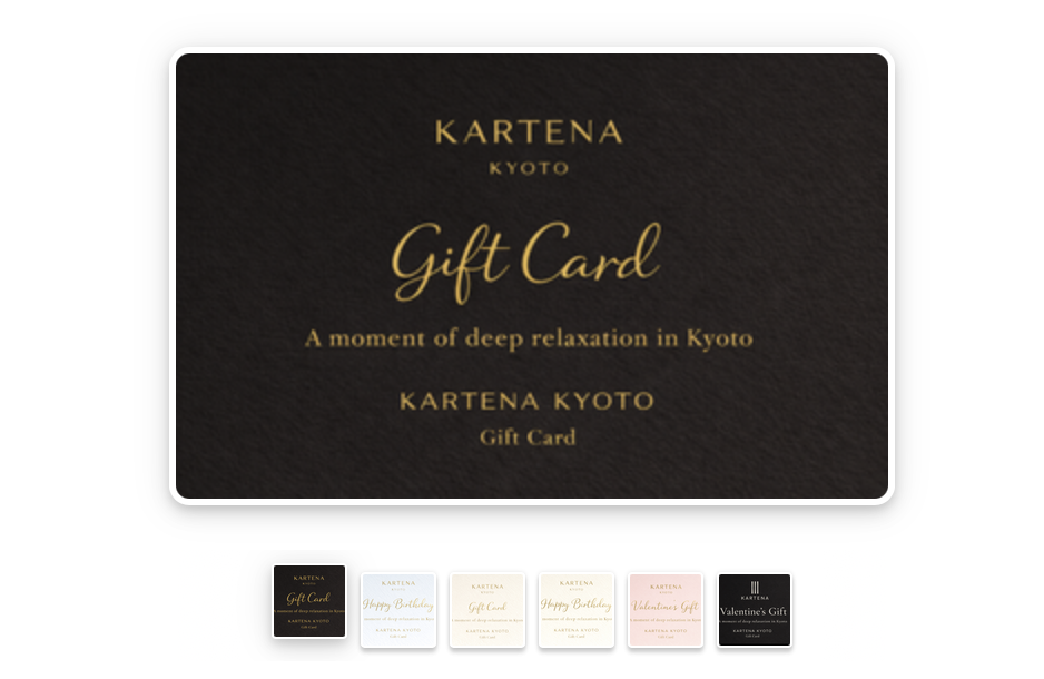 A KARTENA KYOTO Gift Card can be used for any treatment—including deep tissue bodywork, aromatherapy, and acupuncture—so your loved one can choose what they need most.